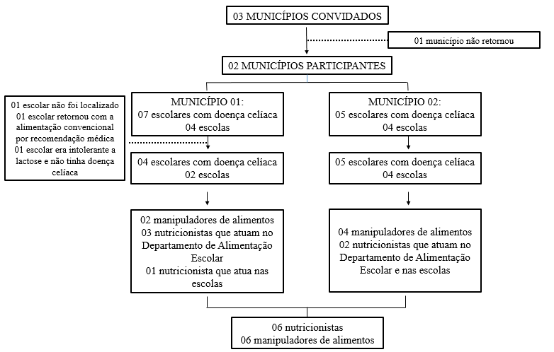 A presente pesquisa teve como objetivo conhecer a percepção dos nutricionistas e manipuladores de alimentos de escolas públicas municipais de dois municípios da Grande Florianópolis a respeito da alimentação escolar para escolares celíacos. Para tanto, foi realizado entrevistas com os nutricionistas e manipuladores de alimentos, utilizando roteiros semiestruturados. As entrevistas foram gravadas, transcritas verbatim e analisadas pela técnica de Análise de Conteúdo. Verificou-se que a alimentação isenta de glúten estava sendo ofertada para os celíacos nos dois municípios. No entanto, algumas dificuldades foram relatadas pelas nutricionistas, como a pequena participação de fornecedores nos pregões para compra de alimentos, o que implicava na limitada disponibilidade de produtos, alguns reconhecidamente com baixa qualidade sensorial e, consequentemente, na baixa aceitabilidade dos mesmos. Os manipuladores de alimentos relataram não sentirem dificuldades com a execução das preparações dos escolares celíacos e mostraram-se bem orientados quanto a oferta desta alimentação. A limitada variedade de produtos isentos de glúten disponíveis para o consumo, afeta diretamente a aceitação alimentar dos escolares celíacos, embora as nutricionistas percebam a importância de um cardápio específico para este público. Os manipuladores de alimentos, em contra-partida, não sentem dificuldades em elaborar o cardápio tendo a vista a pequena quantidade de escolares celíacos nas escolas e a elaboração de poucas preparações envolvendo alimentos isentos de glúten.